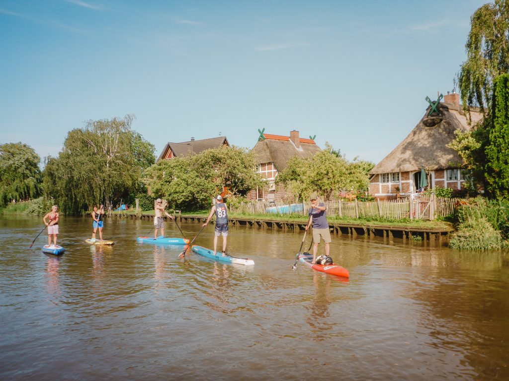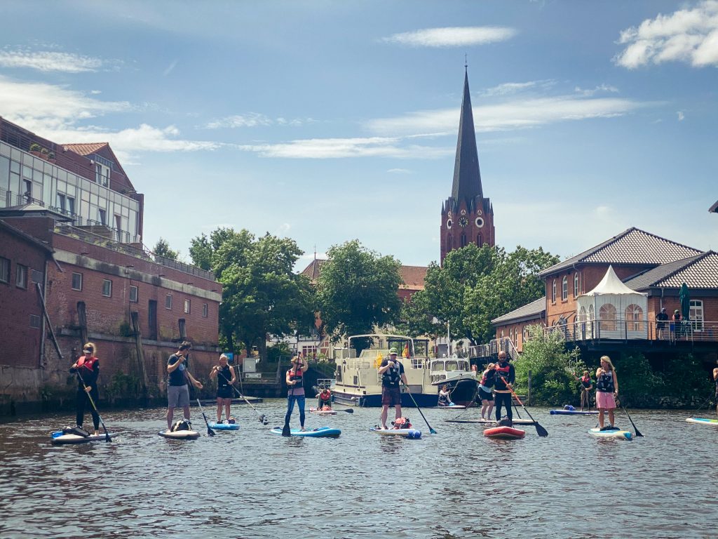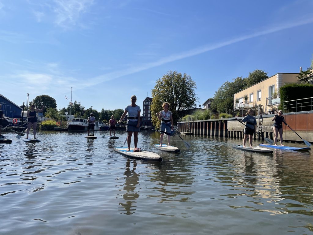 Die Paddeltour „Altes Land“ sollte nur von erfahrenen Paddler gebucht werden. Bitte habe Verständnis, dass wir dir die Teilnahme verwähren müssen, wenn wir den Eindruck haben, dass du dich zu unsicher fühlst. SUP Einsteigern empfehlen wir vor der Tour den SUP Kurs Basic in Stade oder Hamburg zu buchen.